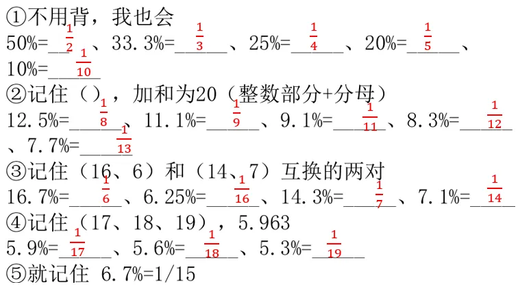 特殊百分数可按照下面形式来背诵