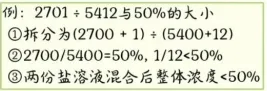 2. 分子分母同时拆分:利用盐水思想判断分数与某数值的大小关系;计算时注意截位规则,选项差值小保留四位,截掉相同位数,截位同进同舍。