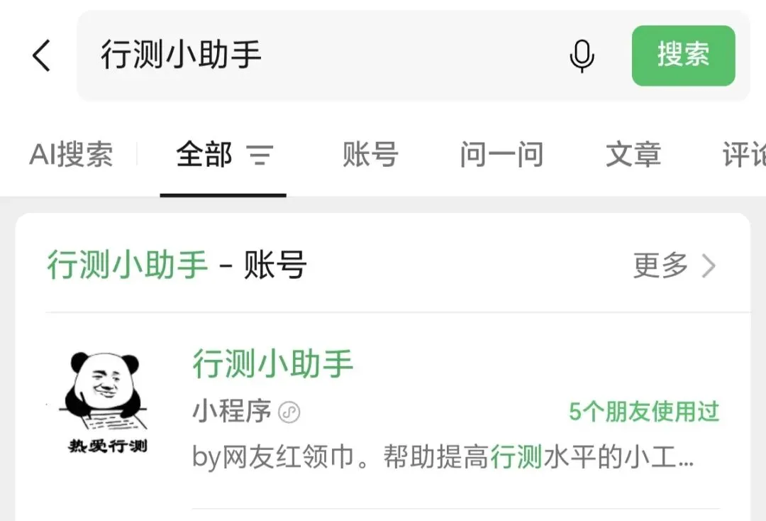 资料分析提速,看到标题可能会疑惑,资料分析提速不就是要多刷题和多练速算吗?没错,资料分析提速就是从这两方面入手!平时练习,纸质版的速算练习,可以直接在拼多多或淘宝买,电子版的就找到资料分析老师的社交媒体账号,小红书、微信公众号、微博等都有分享。碎片时间练习,可以直接在微信搜索栏搜“行测小助手”,是网友红领巾老师制作的。(如下图就是小程序的样子)。