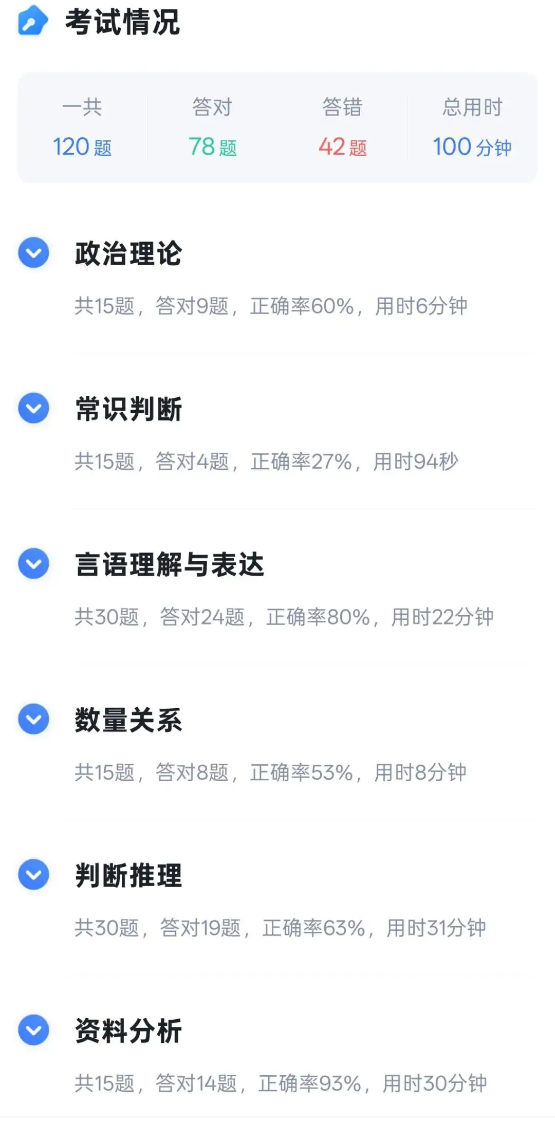 果咖基本没有踩雷的,酸酸甜甜苦苦交织在一块,美味。准备每天再买一下它的百香果,估计味道跟这个美式相比就是少了苦味。天津停暖了,但实话讲最近的温度不算高,特别是晚上的时候。后面还有几个事业编的考试,所以会把笔试这块再捡起来。做的时候就感觉有点手生了,特别是判断的图推和定义这块,做得脑袋懵懵的。其实比100分钟还稍微多了点,但因为粉笔这个计时好像不会四舍五入,只要没到101分钟就只显示100分钟。这次做题顺序就按照试卷顺序走的,没特意先做资料分析。阅读速度上确实是比之前慢了些,这点能从片段阅读的时长上看出来。逻辑填空这块也有好几个题在纠结,最后正确率也一般。但因为当时做的时候特意看了时间,逻辑填空的后面部分就提速了,是想要争取半分钟一道题的。啊啊啊啊啊啊啊啊啊啊啊啊啊啊啊啊啊啊啊啊啊啊啊啊啊啊啊啊啊刚开始做图推的时候就觉得有点难,大脑成浆糊了,这一点也能体现在时长上……紧接着就是类比,个人感觉是挺难的,都不太会,感觉又对又不对的样子,所以也花了不少时间。到了逻辑这块就还好,做得还算快,结果最后的定义直接让人懵掉了……是真的有点没看懂题目,也没理解选项,有两道题翻来覆去地读题目,到选项里找对应,但就是找不到……剩下的常识全是蒙的,因为时间不够了,政理是题目全看了,尽量去选,正确率也一般吧。数量关系自己大概做了四道,也可能是五道,记不太清了。只能记得有一道几何题找到了快速解法哈哈哈哈哈哈哈哈笔试除了职测这块,还得准备综应,然后下周还有天津的面试。啊啊啊啊啊啊现在觉得不如面试完直接告诉成绩,也好过悬而不决的等待。