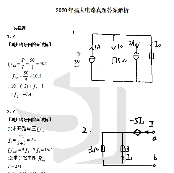 2014-2020,2022-2023年扬州大学841电路考研真题参考答案(答案到23年,不含21)