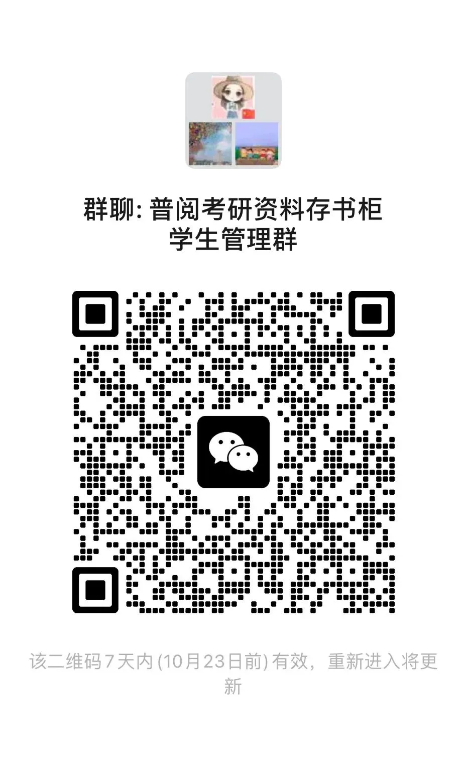 现将今年申请考研资料存书柜通过的名单公布,即日起即可到普通阅览室进行学习使用。请名单上的同学于10月23日前扫描下方二维码进群,未进群错过相关通知,请到普通阅览室服务台找值班老师处理。