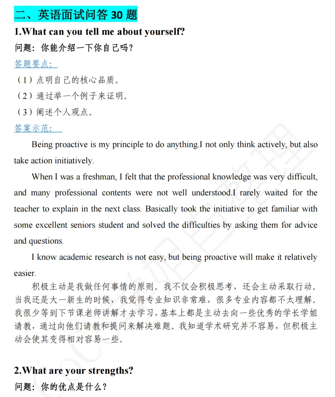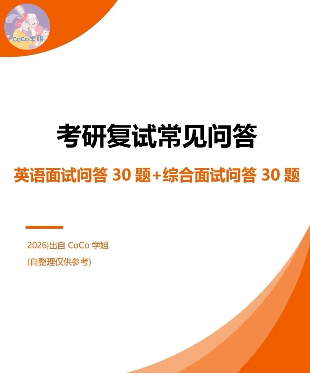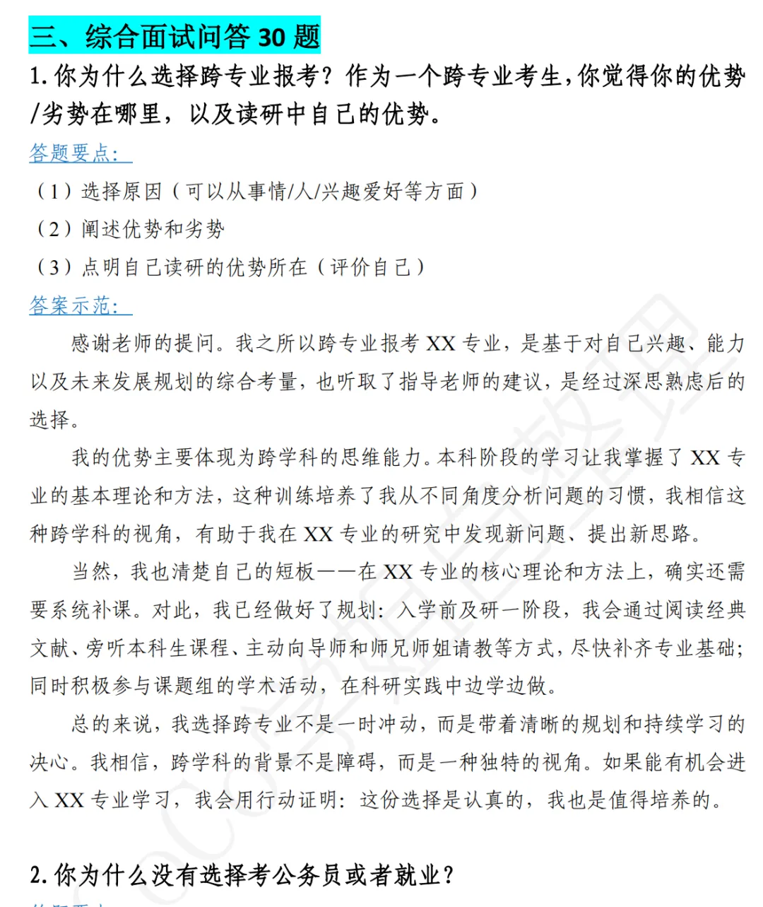资料介绍|考研复试常见问答(英语面试、综合面试问答各30题)