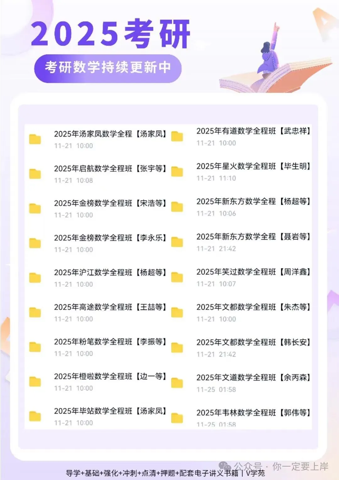 25研究生考试各大机构公共课程(数学,英语,政治)