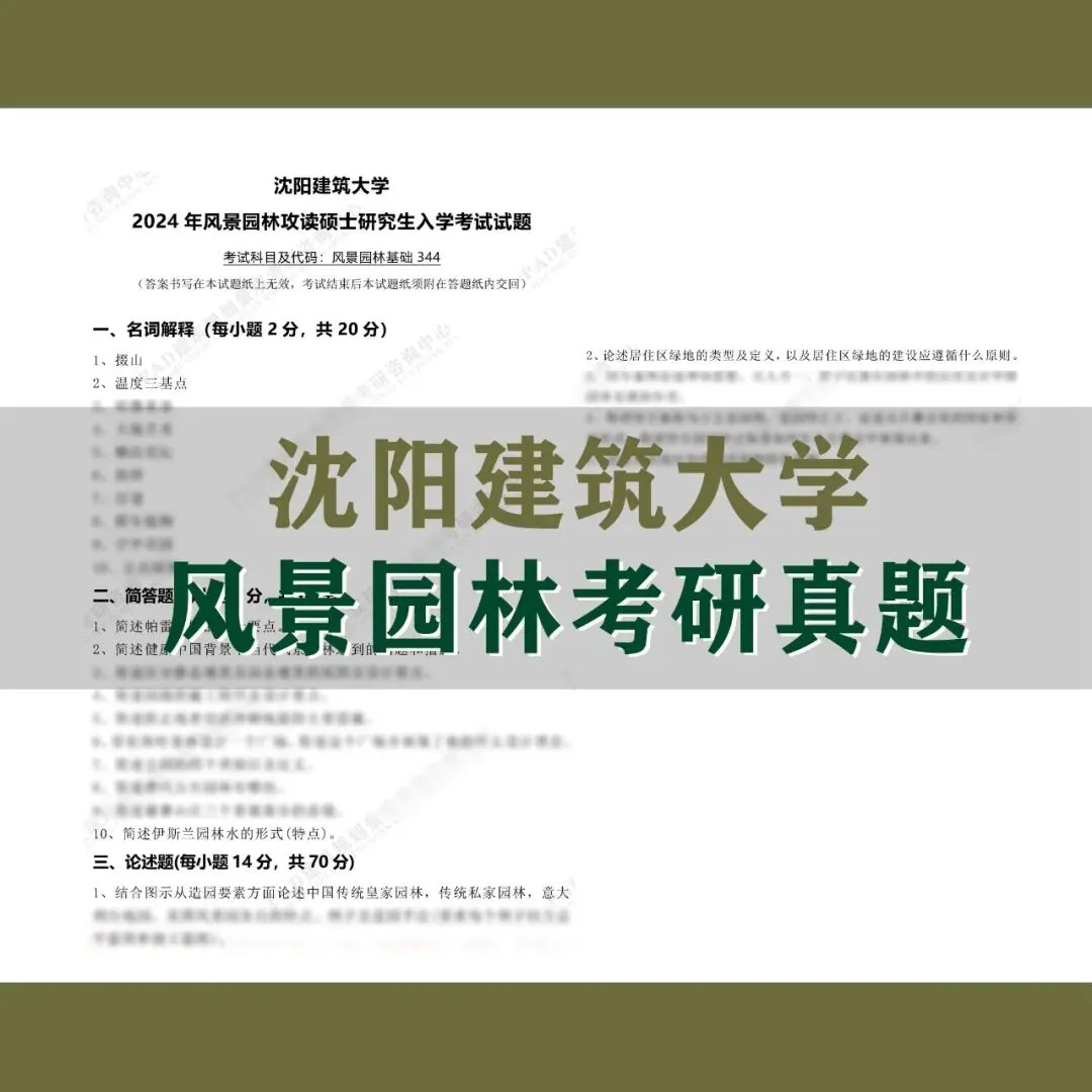 沈阳建筑大学风景园林考研历年真题+初试+复试全套资料!