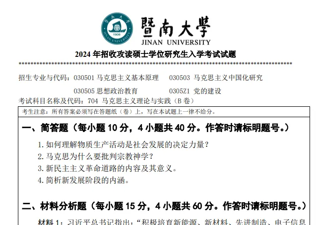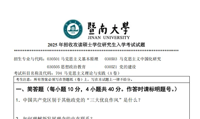 2011-2026年暨南大学704马克思主义理论与实践考研真题试卷【电子版,26回忆版】
