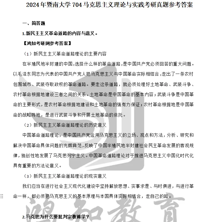 2022-2026年暨南大学704马克思主义理论与实践考研真题答案【纸质版】