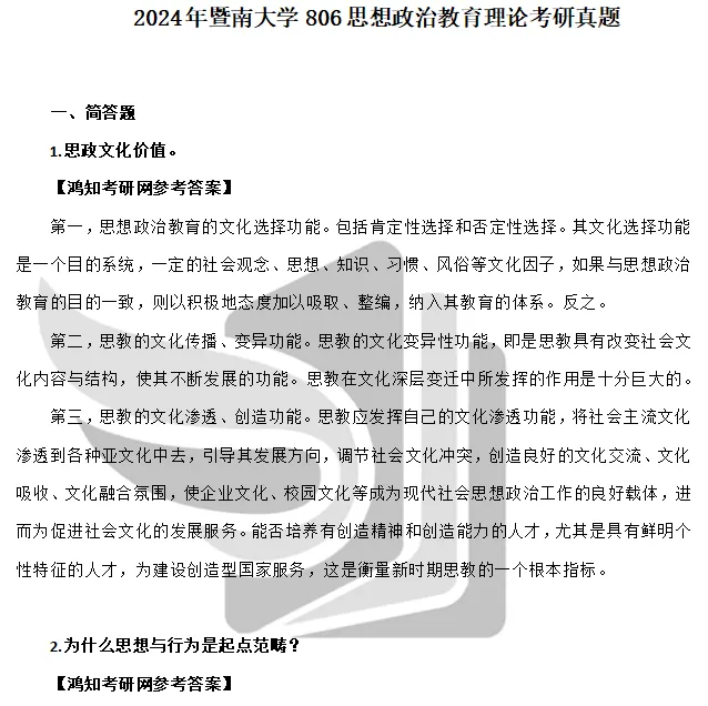 2022-2025年暨南大学806思想政治教育理论与实践考研真题答案【纸质版】