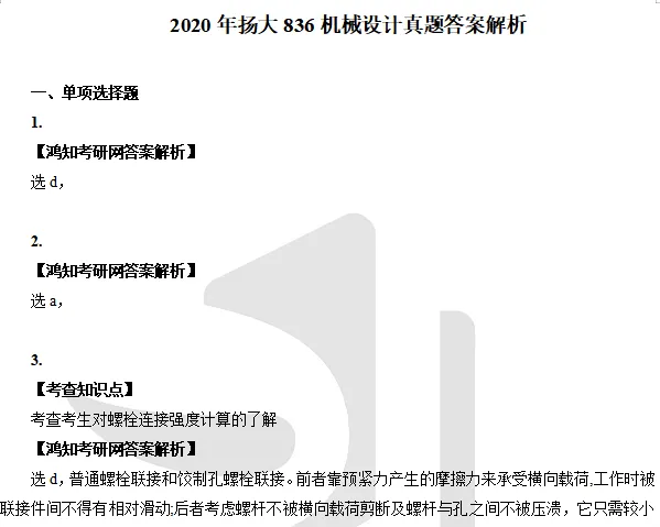 2014-2023年扬州大学836机械设计考研真题参考答案【21-23答案为手写】