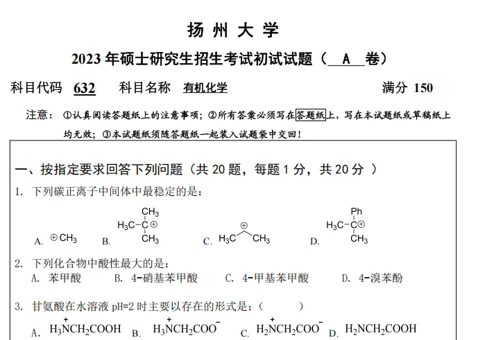 2006-2008,2014-2023年扬州大学632有机化学考研真题试卷