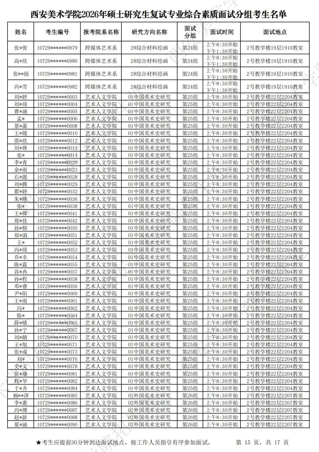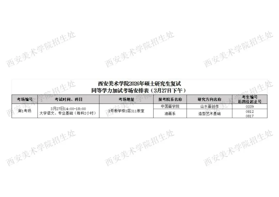 5.考生须于3月27日专业综合素质面试时,将已签名的《西安美术学院2026年硕士研究生诚信复试承诺书》《西安美术学院报考硕士研究生考生政审表》交给面试工作人员。专业综合面试时,考生只允许携带本人身份证和准考证,其他纸质资料一律不允许带入面试场地。