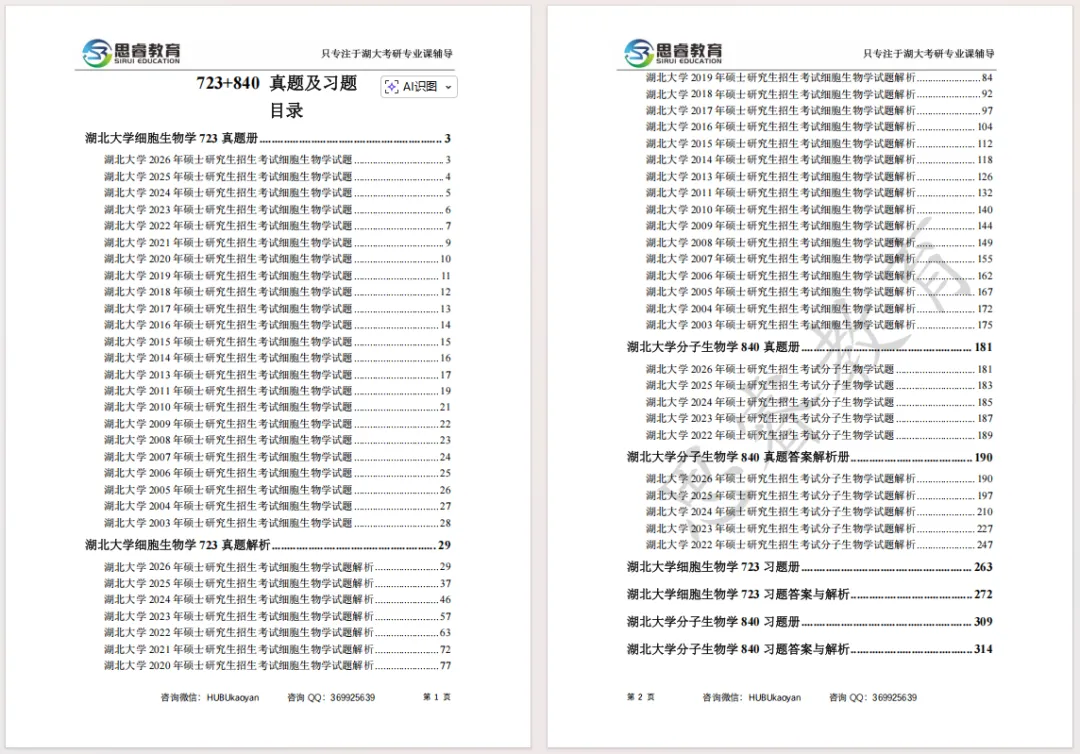 【考研资料】湖北大学27考研 | 生物学专业课723+840蓝宝书 | #最新版#高分上岸研究生团队编写!