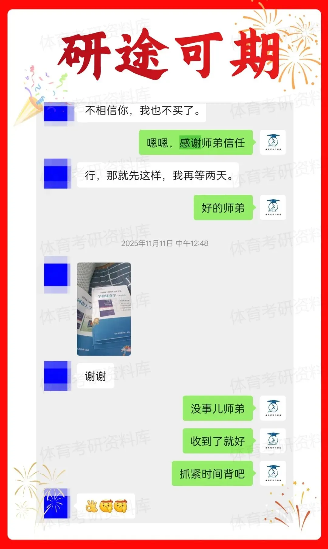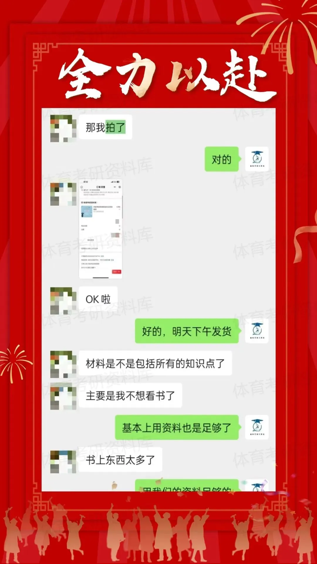 2、根据体育学哥团队的内部统计,购买我们资料的整体录取比例约为60%,譬如2025年最高分397分,2024年最高分407分,2023年最高分407分,2022年最高分408分,2021年最高分398分,最低分283分都为体育学哥团队购买资料的师弟师妹,同样的资料分数差距之大,同时近几年考研试题更为灵活多变,因此考研上岸是有多种影响因素的,我们并不能做到百分之百的上岸率;