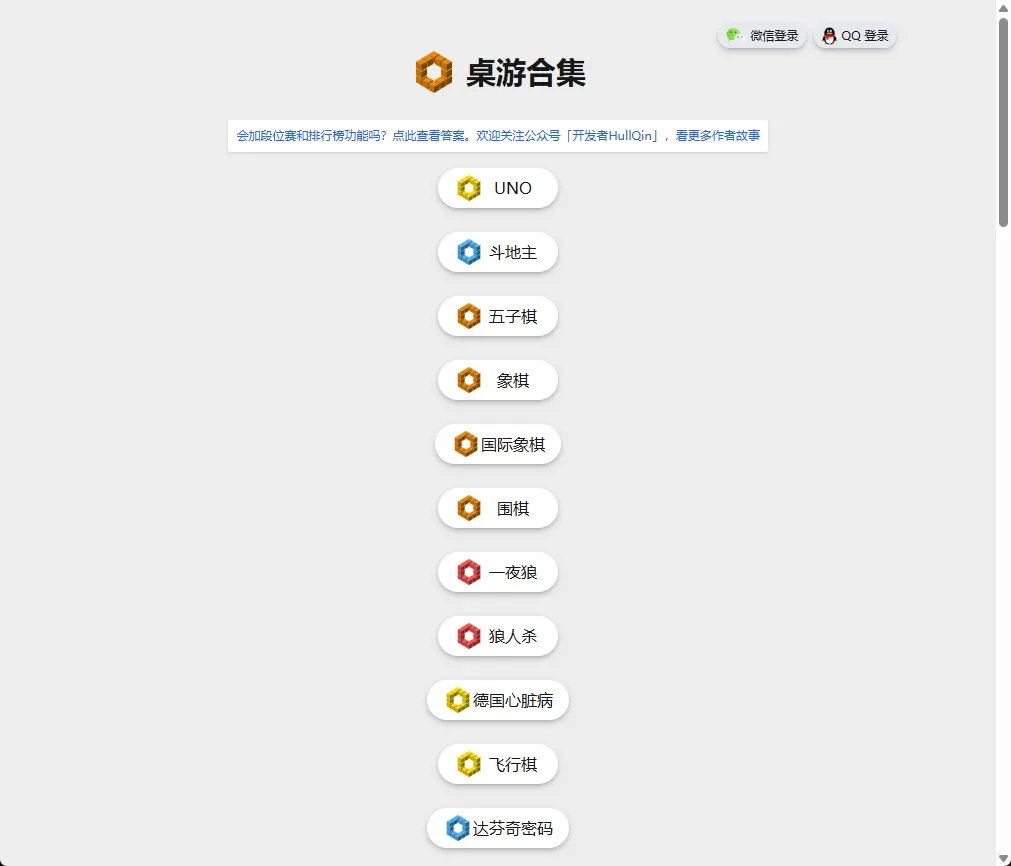 五子棋、斗地主、狼人杀、围棋等,可以创建房间和朋友一起玩,上班的时候拿来摸摸鱼挺好~