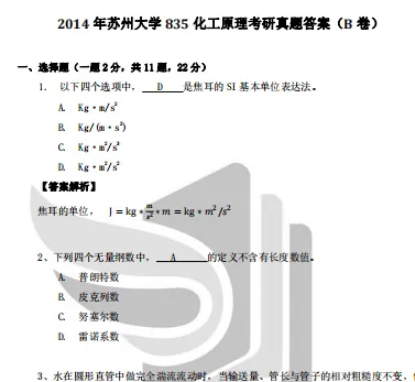 2022年苏州大学867化工原理考研真题答案详解