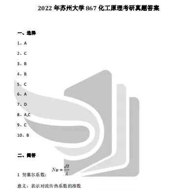 2024年苏州大学867化工原理考研真题参考答案