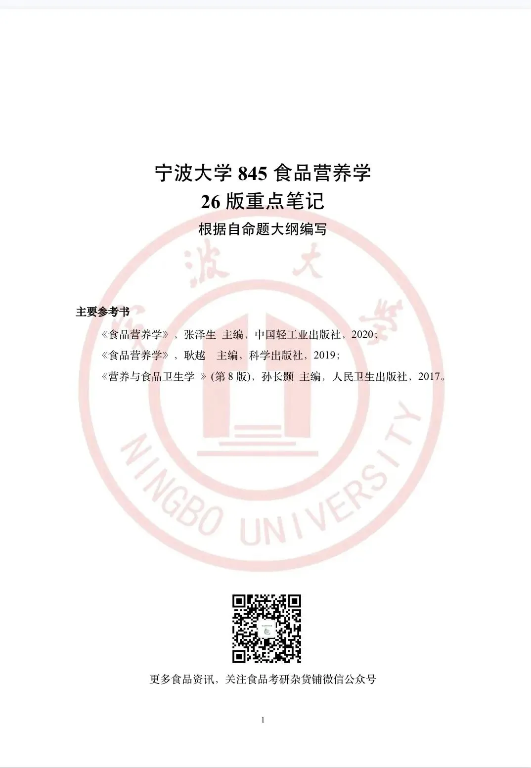 >食品考研资料上新!宁波大学食品营养学