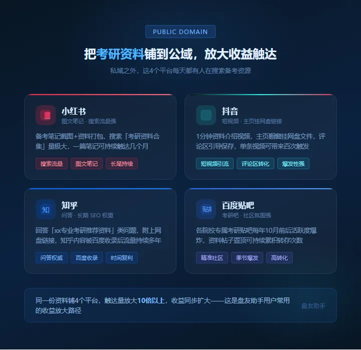 但如果你把同一份考研资料同步发到知乎、小红书、贴吧,
