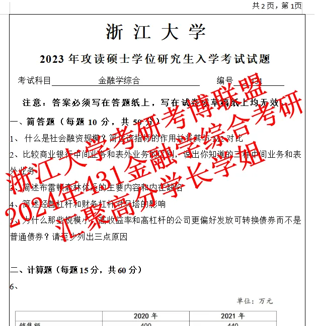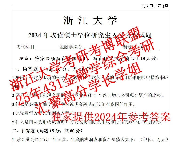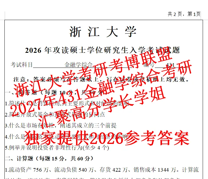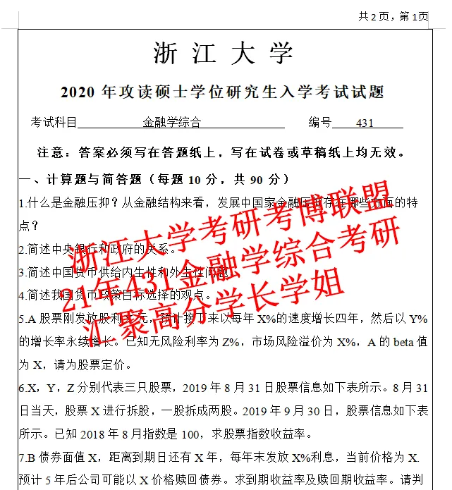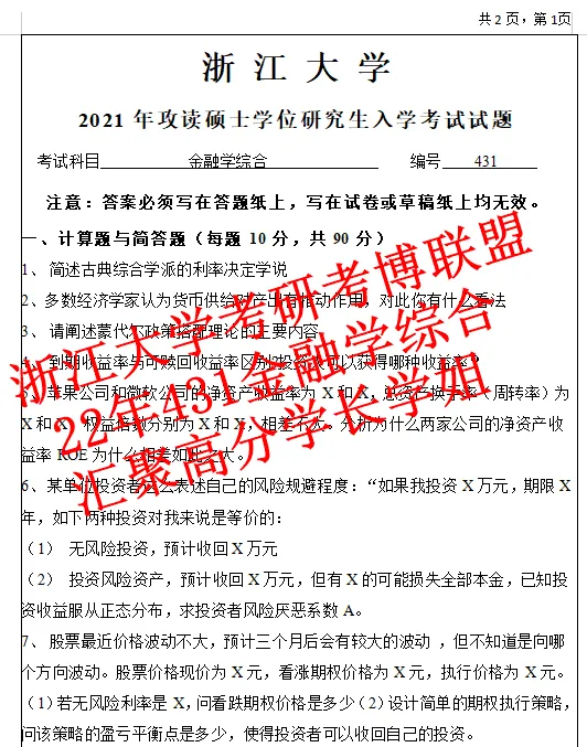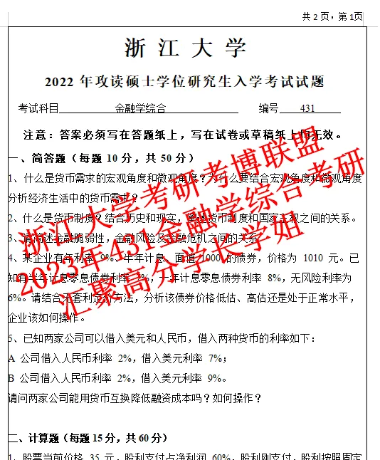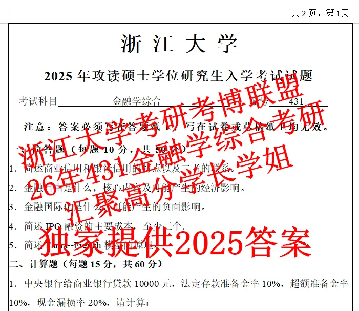 2.浙江大学431金融学综合2025年考研真题参考答案