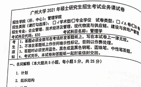2012-2025年广州大学830管理学考研真题试卷