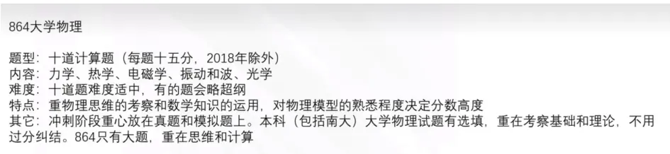 我的一轮准备过程是先看一遍书,然后把例题做了,课后题选做,因为课后题的量太过庞大,可以挑一些重点的课后题做一做,我大概在九月上旬结束一轮复习。然后我在二轮的时候把考研真题当做主要目标(这里不得不强烈推荐小南学姐家的864真题,市面上没有比小南学姐家真题更全的了,这里小小打个广告哈哈哈)。我是按照力学,热学,光学,电磁学,振动和波这五部分考研真题分开来做的(咱们大物应付考研初试只需要研究这五部分即可,其余部分不需要看,大概就是1-3章和5-12章)。然后我是在10月底完成专业课第二轮的复习。第三轮的复习主要围绕着课后的重点题进行,我基本做了光学和电磁学的课后题,其余部分则是压了一些典型的课后题(因为时间不太够了)。我觉得这可以作为一个思路,因为南京大学的大物近几年出题比较喜欢出几道偏难怪的课后题原题,可以重点看看光学和电磁学的课后题,那里出难题的概率比较大。